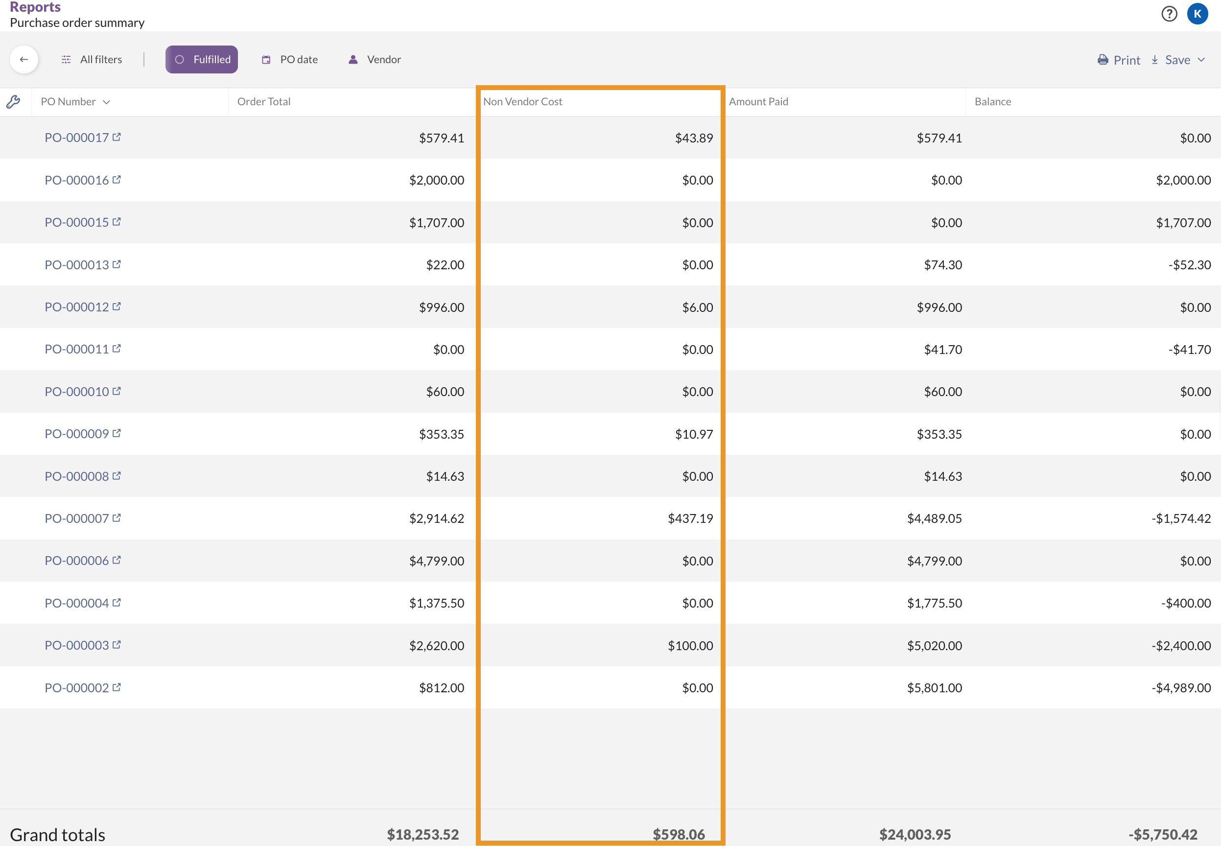 - The Non-vendor cost field has been added to the Purchase Order Summary Report in inFlow for Web.