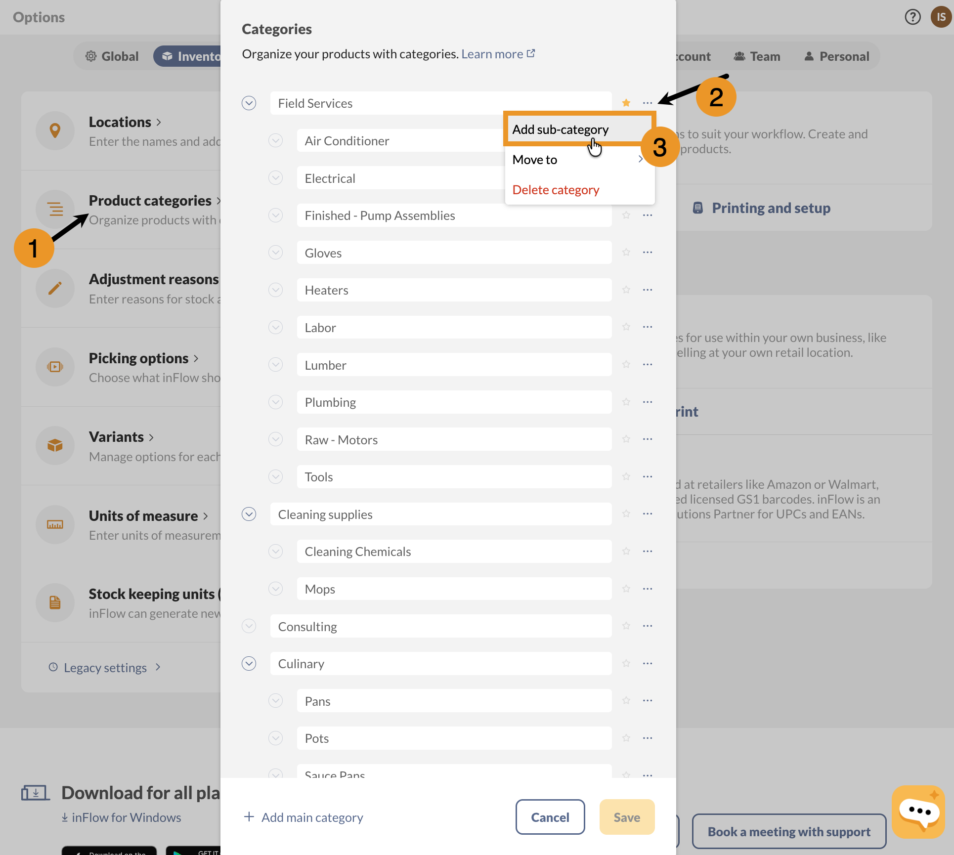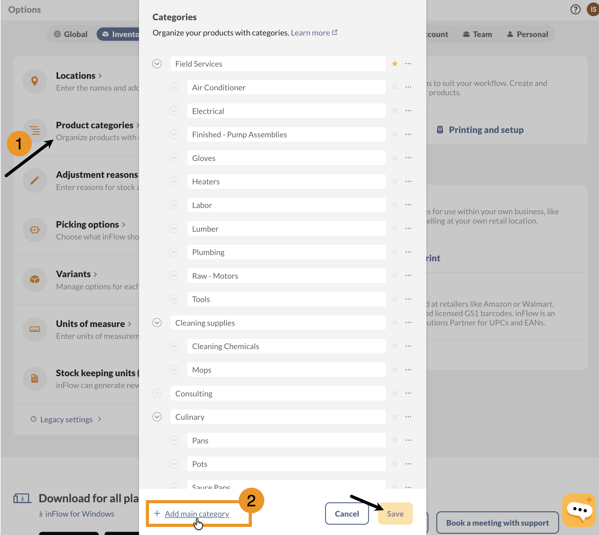 Adding categories to inFlow